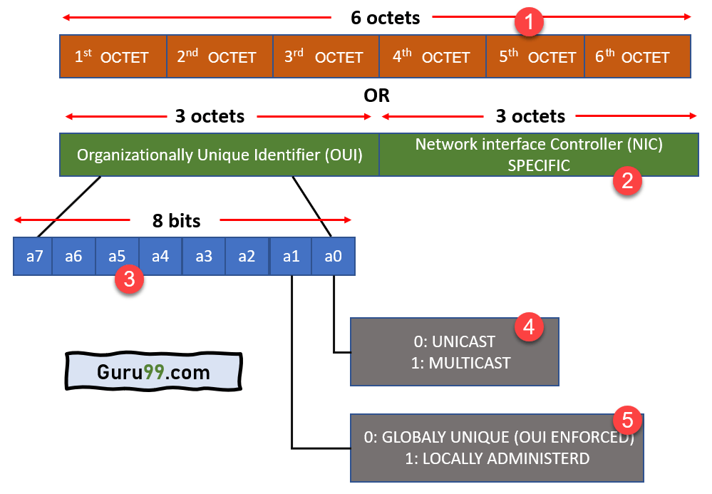 - 프레임이 전송될 장치의 MAC 주소를 포함합니다. 이 주소는 특정 네트워크 인터페이스 카드(NIC)를 식별합니다.