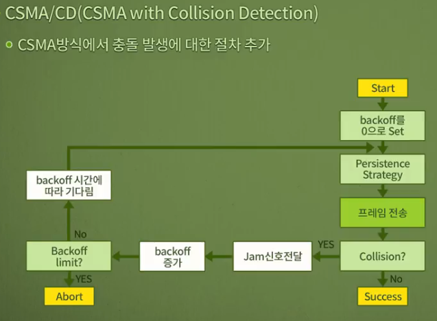 - CSMA방식에서 충돌 발생에 대한 절차 추가